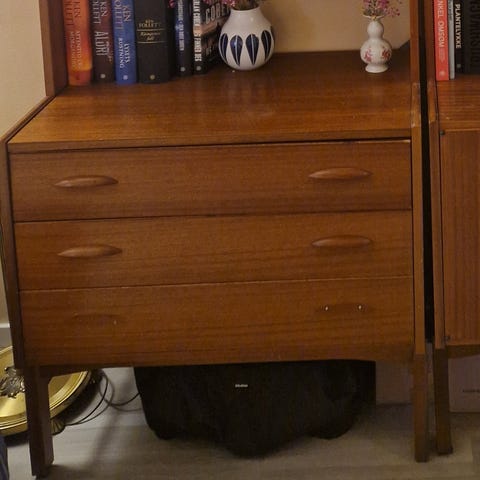 Liknende møbler er ofte laget av materialer som teak eller mahogni og kan finnes til salgs på nettsteder for bruktmøbler i Norge.