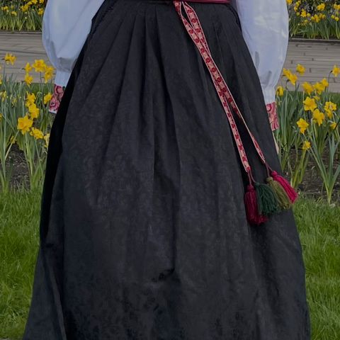Sølvet som er brodert på bunaden er inkludert i prisen. Dvs 8 maljer. Skjorten, skjørt og forkle er håndbrodert