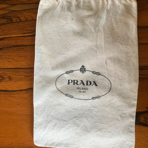 Uekte Prada stoff veske for dame. Vesken har en kombinasjon av stoff og detaljer i imitert skinn med krokodillemønster. Den har doble håndtak og en romslig innside med glidelåslomme. Designet inkluderer brodert logo på forsiden.