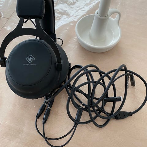 Nesten ubrukte Marshall hodetelefoner i svart farge med over-ear design. Hodetelefonene har justerbar hodebøyle og polstrede øreputer for komfort. Tilkobling skjer via kabel med 3,5 mm jack-plugg. Materialet er hovedsakelig plast og lær.