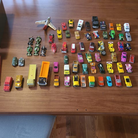Diverse gamle lekebiler + 1 stk motorsykkel med lyd