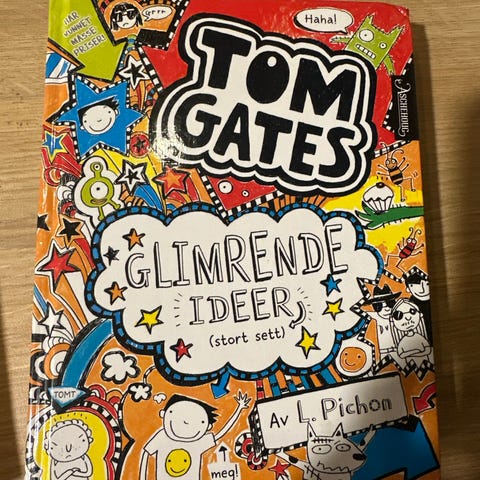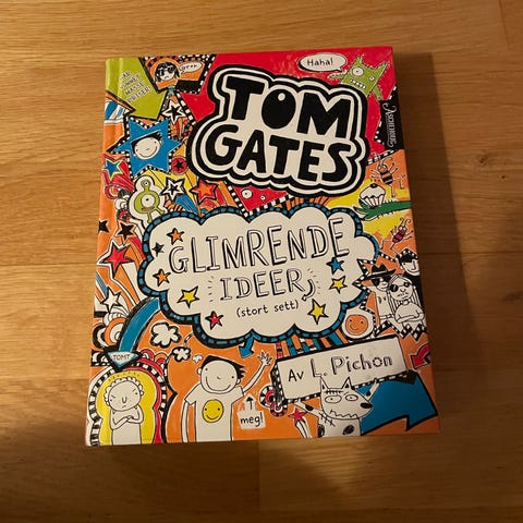 Tom Gates Min geniale verden bok med fargerikt omslag. Boken inneholder illustrasjoner og tekst, og er skrevet av L. Pichon. Passer for lesere som liker humoristiske og kreative historier.