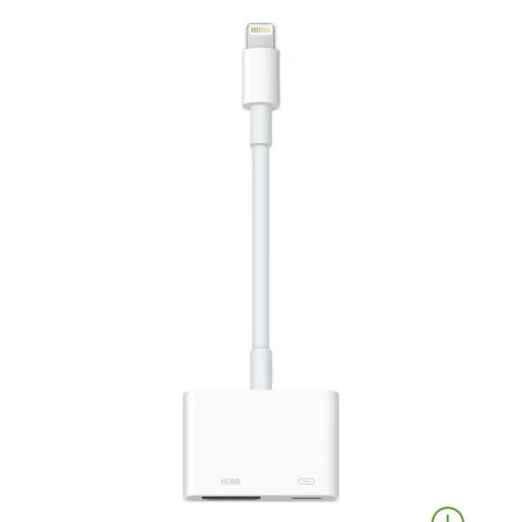 Apple ladere for elektroniske enheter. Produktet inkluderer en vegglader og en ladekabel med USB-C til Lightning-tilkobling 2 meter. Fargen er hvit.