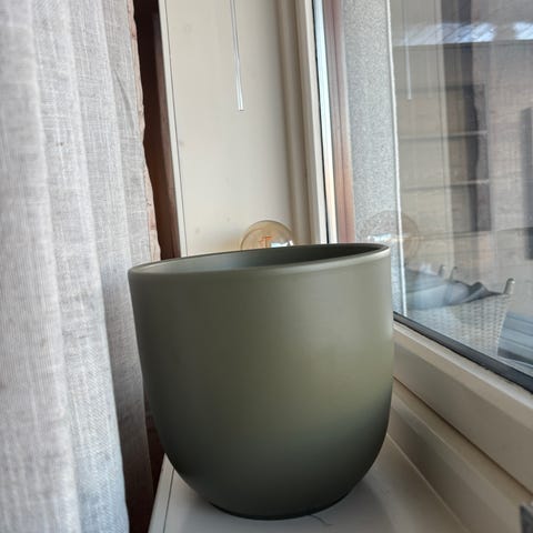 Flott Tuja Smaragd (Thuja occidentalis 'Smaragd') med solid flott krukke og dekorstein. Står ute hele året