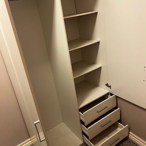 Jeg selger et garderobeskap med tre rom. Det har blitt demontert. Kom gjerne og se på det.