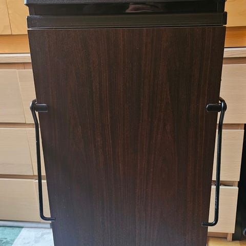 CORBY buksepresse i eik( muligens ask). Lite brukt. Fastmontert henger til jakke. Tidsur.
