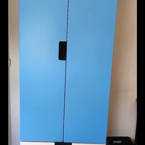 IKEA barneskap med flere skuffer i rosa farge. Skapet har dekorative mønstre og er egnet for oppbevaring av barneklær eller leker.