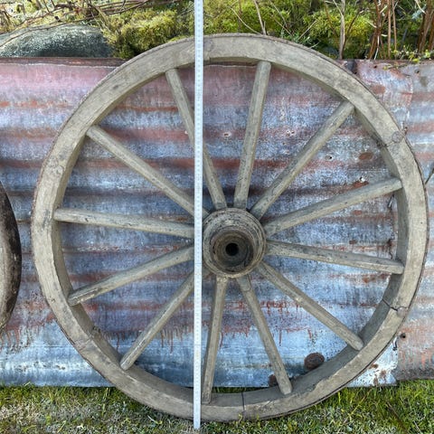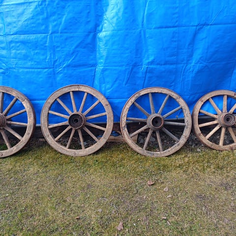 Gamle trehjul på aksel.