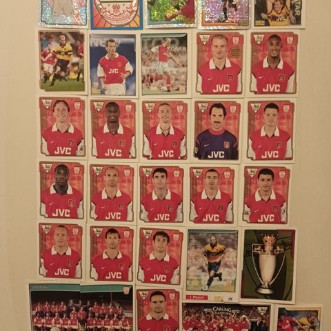 Samling med seks originale Arsenal-stickers fra Merlin Premier League 95.