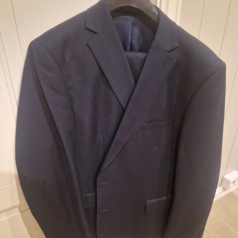 Dressmann dress i grå farge. Jakken er i størrelse 60, beregnet for menn. Buksen str W40 L32