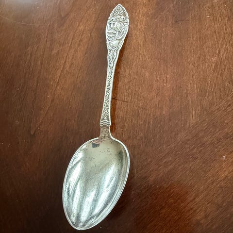 Sølv smørspade med Flat Rose mønster på blad og håndtak. 14,5 cm.