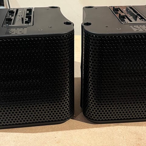 Selger et par AER AS 281. Begge fungerer som de skal og selges samlet (foretrekkes). Dette er solide, kompakte aktive høyttalere som egner seg svært godt til akustisk bruk, mindre PA-oppsett, monitorering og generelt kvalitetslyd i bærbart format. Frontskummet i begge høyttalerne er byttet til nytt originalt skum fra AER. Pent brukt med normal kosmetisk bruksslitasje (se bilder). Brukt ved små konserter i kombinasjon med en AER domino3 (separat annonse, men kan selges som pakke)