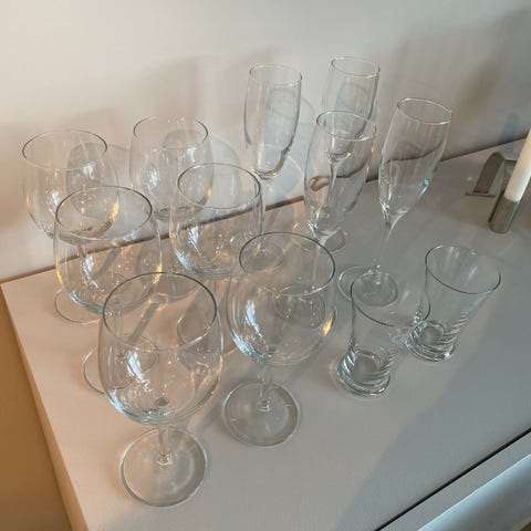 Diverse glass gies bort ved henting.
