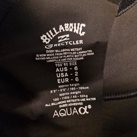 Aquaman ADV våtdrakt i svart farge laget for bruk i vannaktiviteter. Drakten er laget av neoprenmateriale som gir isolasjon og fleksibilitet. Den har synlige tegn på bruk med rynker og små skader i materialet, noe som kan påvirke tetthet og holdbarhet. Egnet for vannsport der beskyttelse mot kaldt vann er nødvendig.