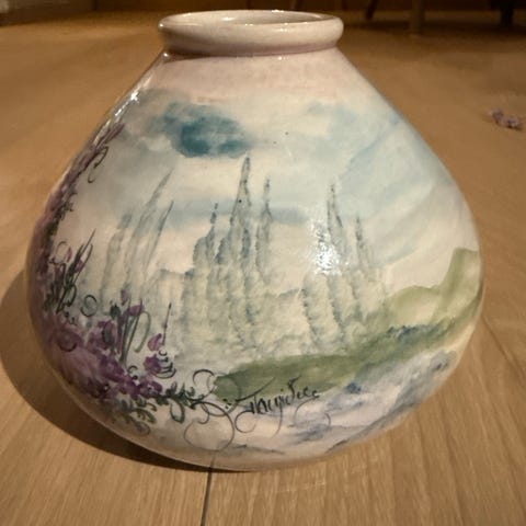 6 kunstglass vin grønn blå klart glass. Kr. 100,- pr. stk. Alle samlet for kr. 500,-.