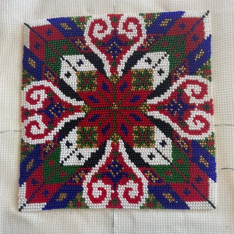 Brodert med DMC garn på lin. (Ferdig montert kr 6000,- )