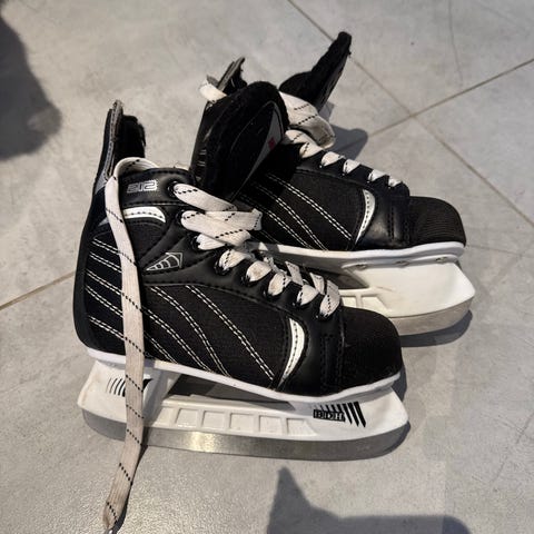 Ishockey skøyter for barn i størrelse 35 med svart og hvit farge. Skøytene er designet for ishockey og har tradisjonelle snøringer for god passform.