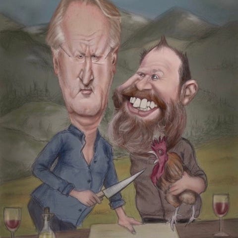 Karikaturtegning av Hellstrøm og Truls som jakter på trøfler . 😁🍄 🟫