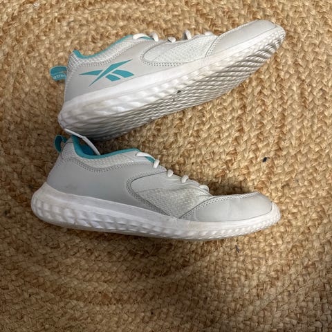 Reebok Sneakers joggesko i størrelse 36,5. Skoene har en kombinasjon av farger med hovedsakelig hvit, blå og rosa detaljer. Ganske godt brukt