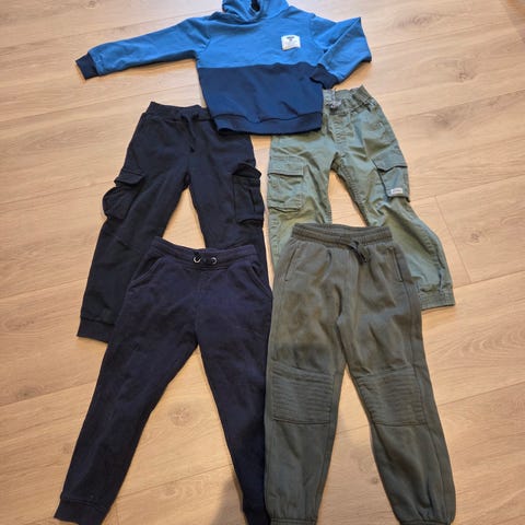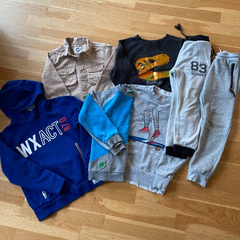 Bomullsgenser str 122/128, et bruksmerke foran.