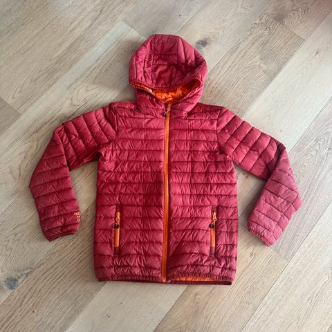 Det er hull inni den ene lomma (kan sys) og strikken i hetta er gått ut. Ellers er jakken helt fin. Brukt en sesong.