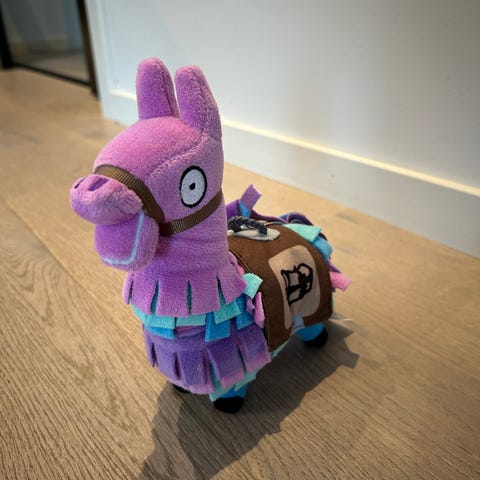 Fortnite Howdy Pinata barneleketøy i fargerik design med lilla, blå og rosa farger. Laget av mykt materiale, egnet for barn.