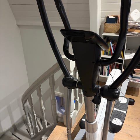 Masterfit TP500C ellipsemaskin i grå og svart farge. Treningsapparat for kondisjons- og styrketrening. Utstyrt med digitalt display for enkel oversikt over treningsdata. Egnet for hjemmebruk.