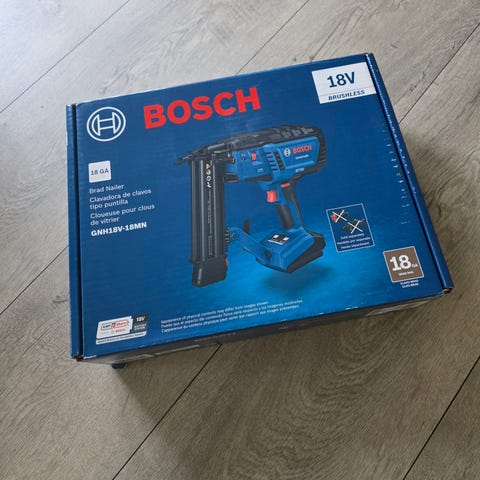 Pent og lite brukt bosch 18v-38 boltepistol selges siden den ikke trengs lengre, medfølger 2 esker med spiker og ekstra langt magasin