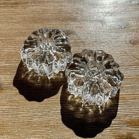 Hadeland Glassverk, Istind. Lysestake og lysholder/vase. 225kr samlet