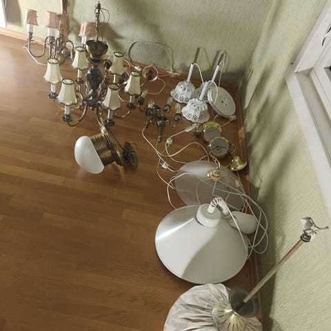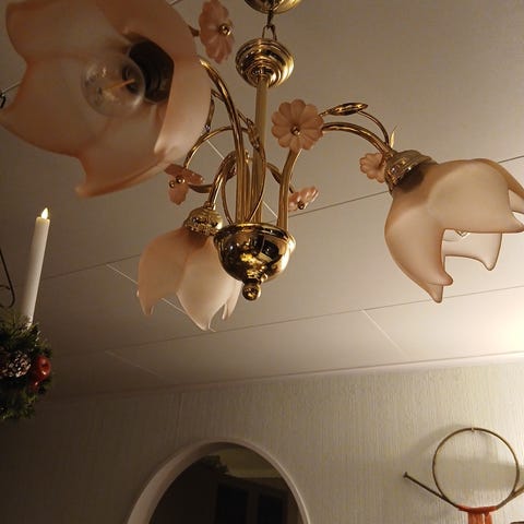 Superflott dekorativ og stilren taklampe selges. Har desverre ikke bilder av denne med lys i. Ingen skader jeg kan se, men denne har vært brukt. Gir ett flott blikkfang i rommet!