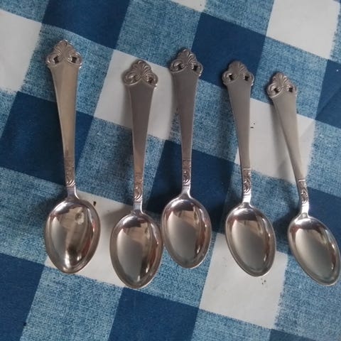 De rimeligste knivene ligger på 50 kr stk, ved kjøp over 400 får du litt avslag. Og jeg har alt mulig pent både service og deler som kan matche. Ta kontakt .