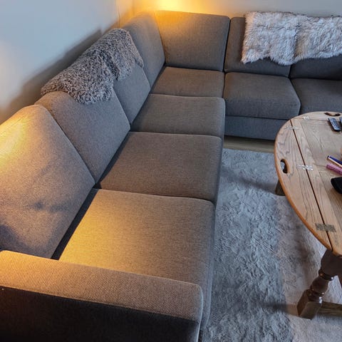 Hvit Ektorp hjørnesofa til salgs, kan ikke hentes før rundt midten av februar.