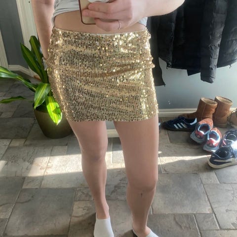 Bik Bok paljettkjørt i sølvfarge, størrelse L. Kjøpt i feil strl, aldri brukt lapp fortsatt på.