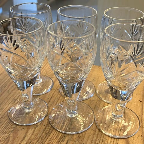 Krukket vinglass krystall 5 stk klar