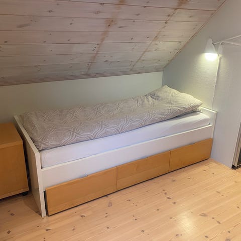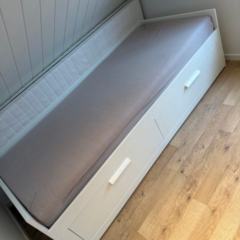 Pent brukt dagseng selges med en madrass som er sovet i svært få ganger