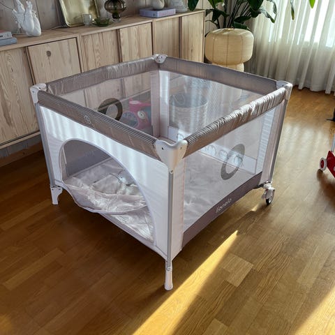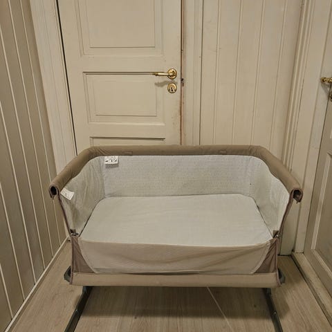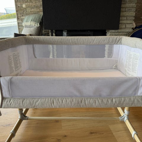 Brukt reiseseng som er veldig enkel å ta med på reise. Åpning med glidelås på den ene siden slik at barnet kan krype inn i sengen. Transportbag følger med. Frakt er inkludert i prisen.