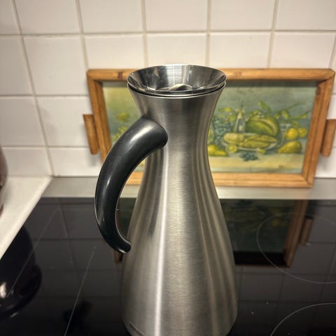Eva Solo termokanne av rustfritt stål med svart håndtak og topp