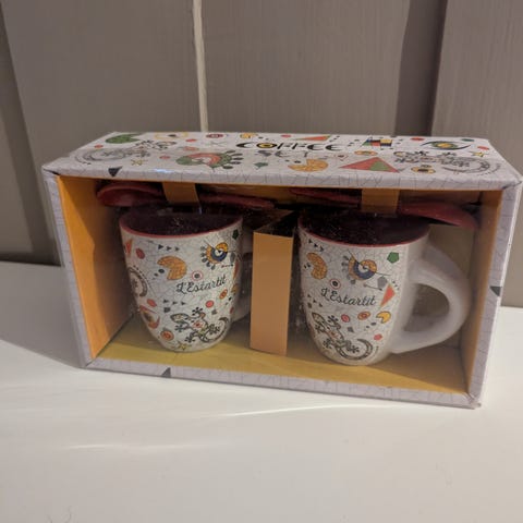 Koppen med lokk og skje selges nå for kr 80,- og i tillegg kommer porto hvis den ikke kan hentes.