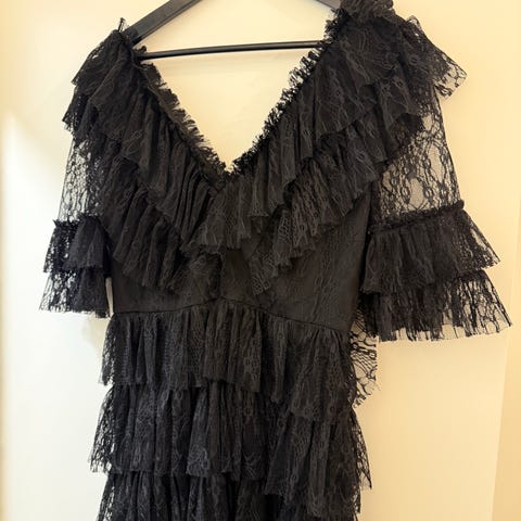 Den har strikk rundt livet og glidelås under armen. Selges fordi den dessverre bare har blitt hengende og det må tynnes i rekkene i kjoleskapet 🪻Nypris var 5,499,-