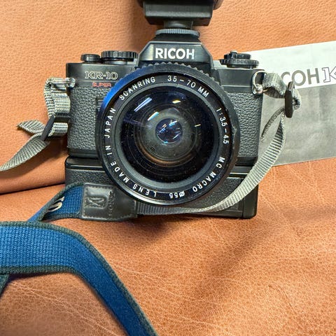 Sel eit topp analogt kamera for 35 mm film. Eg har nettopp testa det med sv/kv film som eg har framkalla, med godt resultat. Ingen lyslekkasjer og skarpe bilder. Lukkar, speil og blender fungerer heilt fint! Legg ved eitt av bilda.