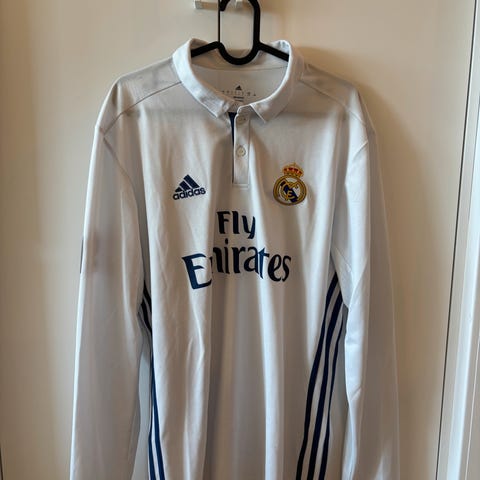 Adidas Real Madrid fotballtrøye i størrelse L, farge hvit. Langermet modell med nummer 23 og navn Beckham på ryggen. Splitter ny med klare fine farger.