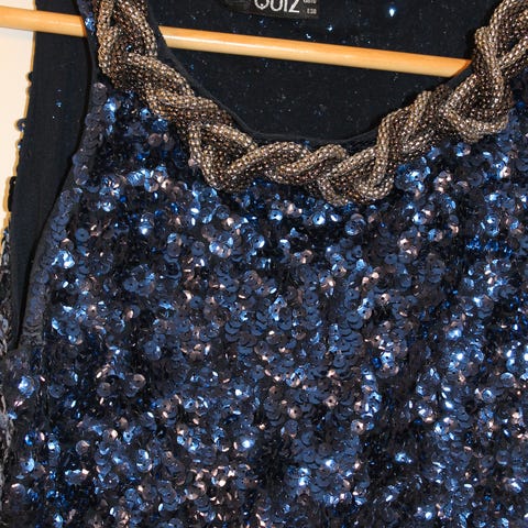 Quiz minikjolen er i størrelse S/M i svart. Den har en rysje foran. Stroppene kan bæres løst på skuldrene. Kjolen fremhever figuren.