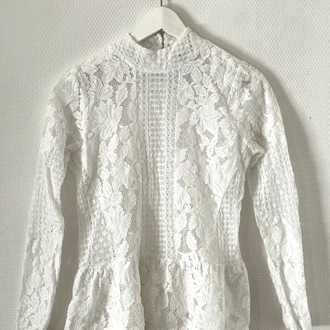 Blondebluse, foret. Glidelås i ryggen, nesten helt ned. Elastisk. Str M. Merke: Dry Lake. Innsvinget i livet, feminint snitt. Nypris ca 1200,-