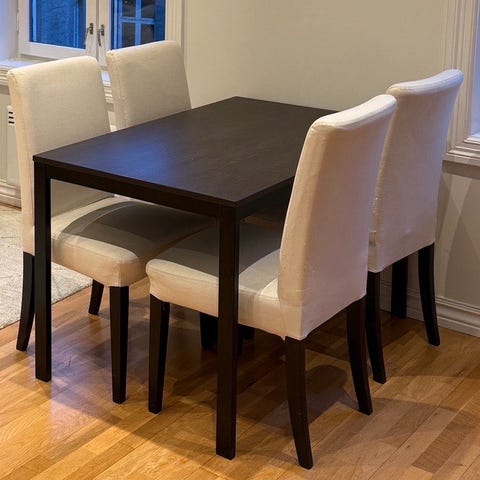 Gir bort 4 spisestoler fra IKEA i klassisk hvit farge.