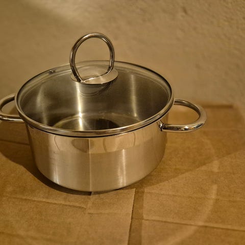 Kjele selges, 18-19 cm diameter med glasslokk.