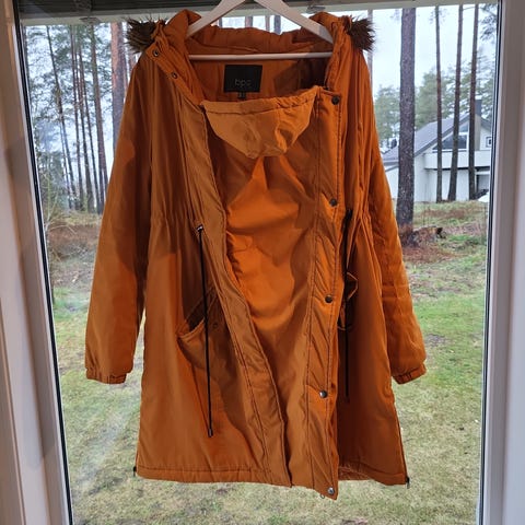 Praktisk og pen parkas fra Søs Jensen i varm sennepsfarge. Foret jakke med hette og mykt teddyfôr, glidelås i front og gode lommer. PU-belagt ytterstoff som gir vind- og vannavvisende egenskaper.