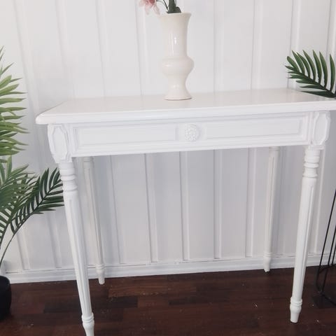 Jeg kjøpte dette bordet, pusset bort maling og malte på nytt. Dessverre finner jeg ikke noe sted hvor den passer i den lille leiligheten min.