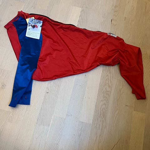 50% ull. Brukt i 5 min. Et strammebånd bitt av 😅 kan sys på igjen, følger med. Passer til normal/smal bygget hund, ikke staffordshire bullterrier o.l.