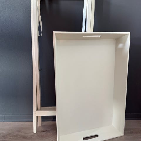 Juletre-80kr, tørkestativ rød 10kr., saks og kniv 20kr for alle, ikea bord firkant 20kr, ikea bord rund 50kr, bord lampe 40kr.