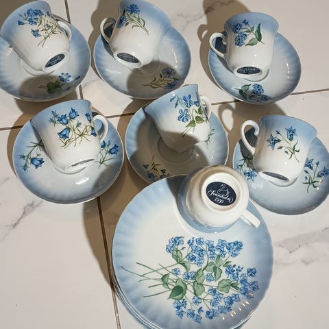 Selger alle delene til 6 komplett inkludert da ekstra kopp og tallerken 20 deler alle i god stand og uten skader.